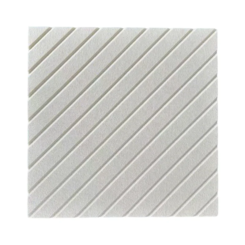 I nostri pannelli acustici in feltro PET beige con taglio a V di alta qualità utilizzano fibra di poliestere al 100% come materiale di base, con una delicata trama con taglio a V sulla superficie, morbida e confortevole al tatto. L'interno è pieno di fini micropori che intrappolano efficacemente il suono all'impatto, prevenendo riflessione e riverbero. Questo non solo risolve il rumore dell'eco, ma migliora anche l'estetica della parete con il suo versatile colore beige, garantendo che la riduzione del rumore non sia in conflitto con il tuo stile di arredamento: pratico e bello!