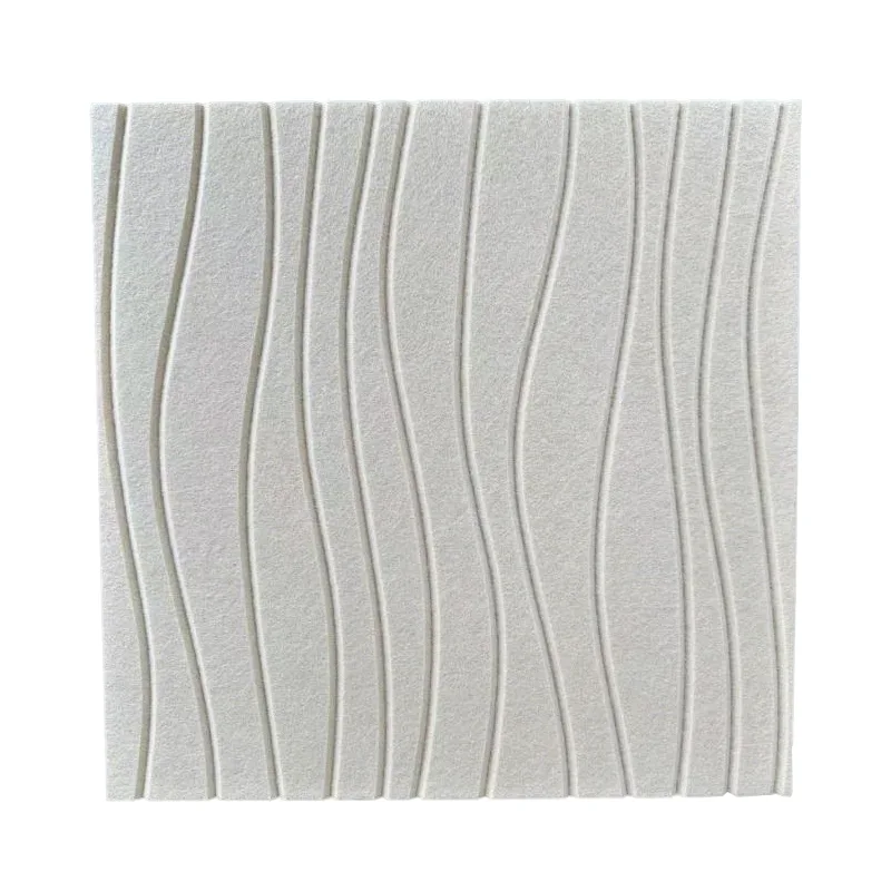 Il pannello acustico in feltro PET beige Water Wave è progettato per ridurre significativamente gli echi e il riverbero. La sua struttura porosa unica impedisce al suono di riflettersi dopo essere entrato nel pannello, creando un ambiente più silenzioso e confortevole. Che si tratti di studi, uffici o sale conferenze, questo pannello acustico riduce efficacemente le interferenze acustiche indesiderate.